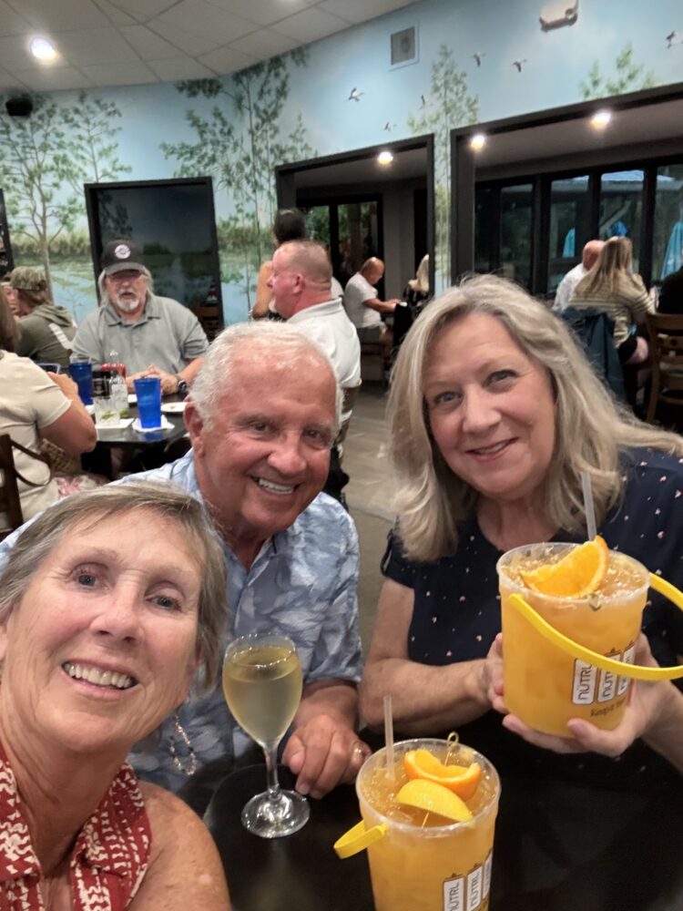 Of course, not all is merry all the time. If you will recall, Ty’s best friend and our “landlord in FL” John Hill, passed away in November of 2025. We got together with Sandy, John’s wife, a few times, the first are awkward not having cheery John with us. We talked through our sadness and made peace with our knowledge of how long we had known and loved John. And we celebrated Sandy’s birthday with a bucket of mango margarittas!